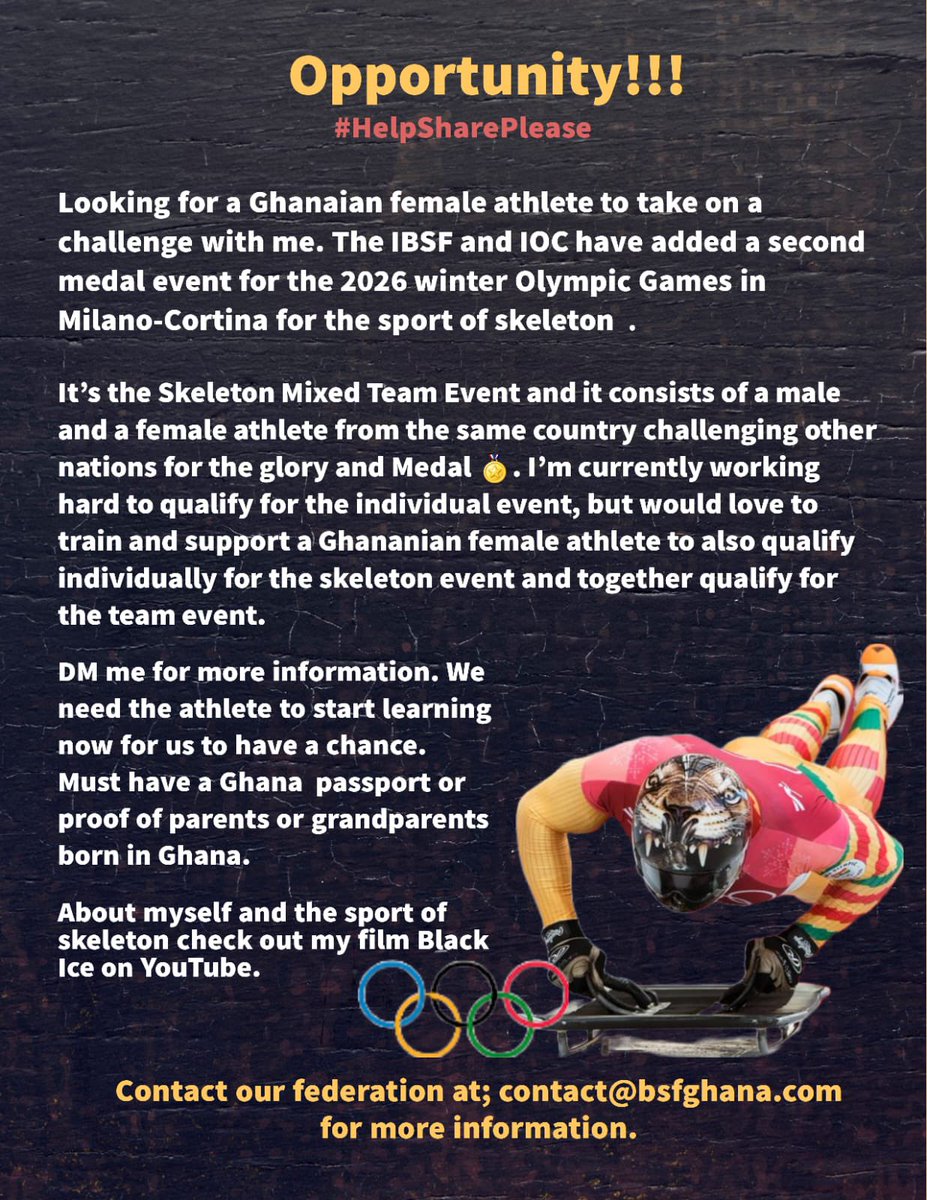 Frimpong Seeks Ghanaian Athlete For Mixed Team Skeleton At Milan Cortina 2026